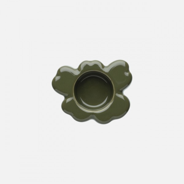 Le photophore en forme de fleur Unikko est en céramique avec un vernis vert.