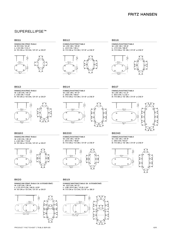 La table Superellipse™ est créée par Piet Hein, Arne Jacobsen et Bruno Mathsson. Le modèle B614 appartient à une grande série de tables éditée par Fritz Hansen.
